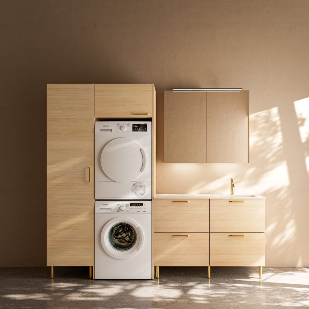 ERGO-serien integrerar tvättmaskinen i möbelsystemet och finns i flera varianter: